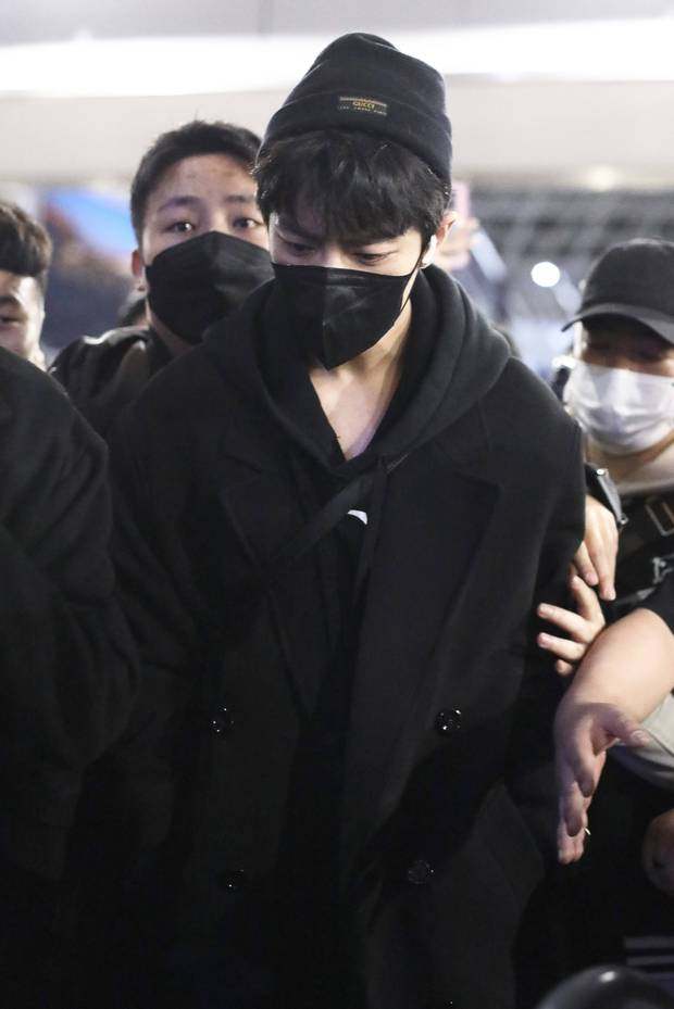 肖战现身机场,前往米兰参加时装周。