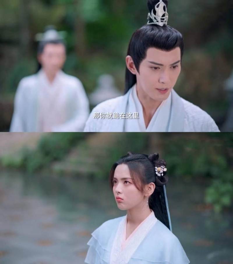 男主再次从天而降,救下女主。随后上演一段“徒弟罚跪但痛在师父心”的虐恋戏码,又完成一次发糖KPI。
